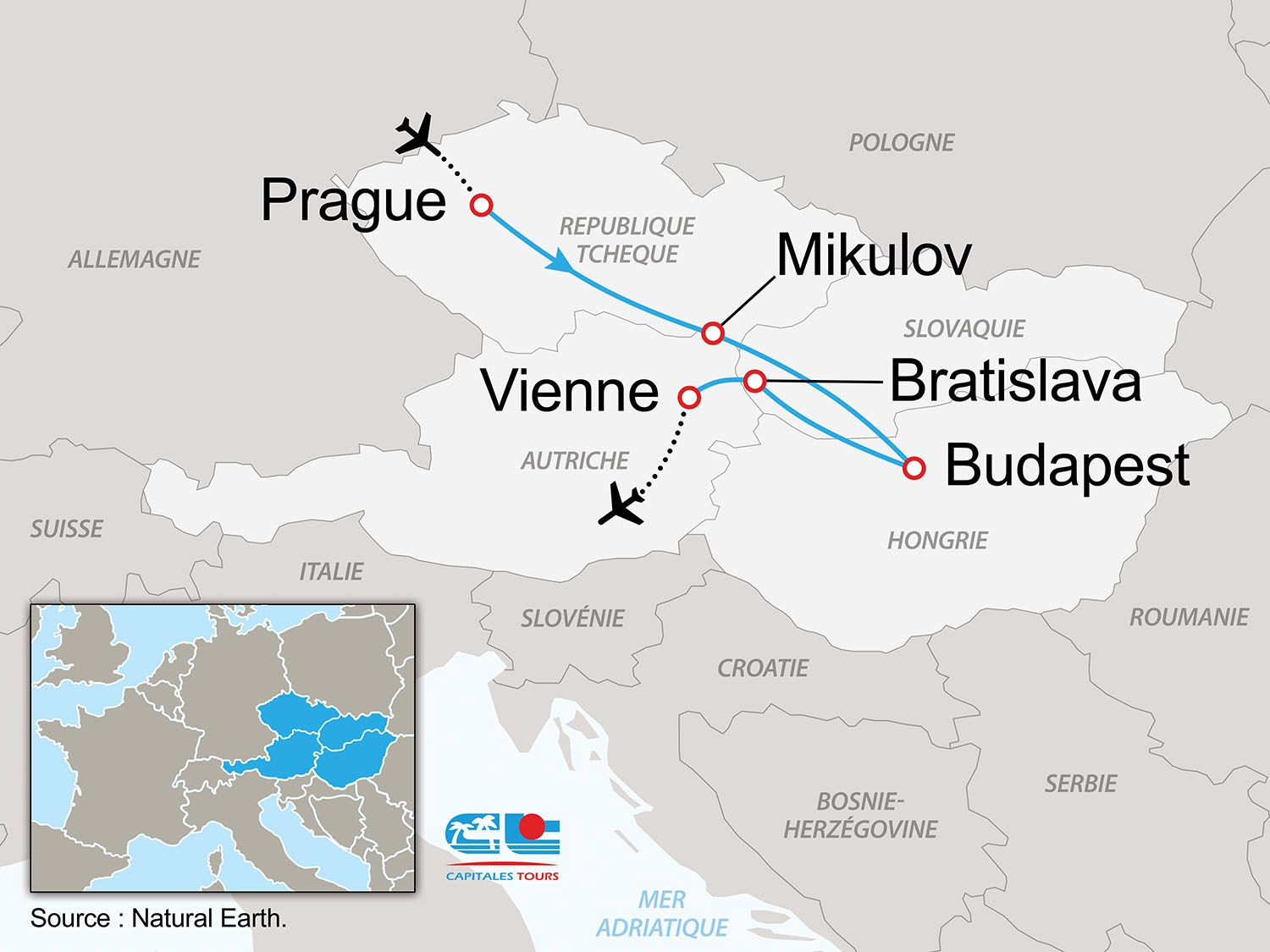 Le circuit peut se faire dans le sens Prague/Vienne ou Vienne/Prague.