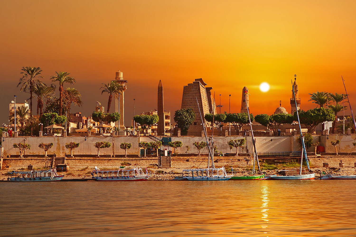 Pour des raisons de logistique et afin de préserver les monuments, un grand nombre de bateaux sont amarrés à l'extérieur de Louxor. Possibilité de rejoindre le centre-ville de Louxor en taxi (avec supplément).