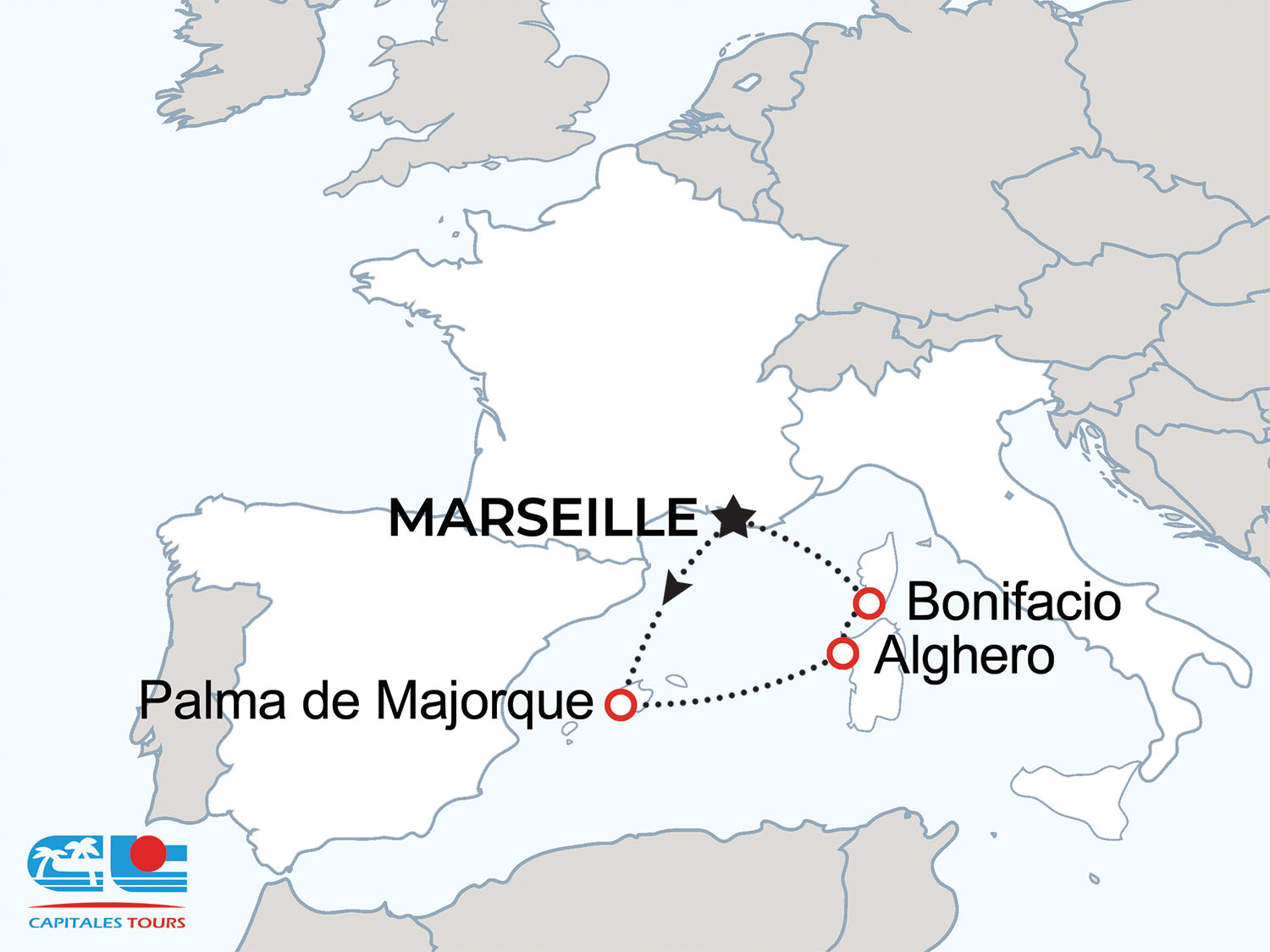 Renaissance vous embarque pour une croisière exceptionnelle au départ de Marseille, mêlant perles de la Méditerranée occidentale et spectacle céleste unique. Lors de la journée de navigation vers les îles Baléares, vous vivrez un moment inoubliable : l’observation d’une éclipse solaire depuis les ponts du navire, aux premières loges d’un phénomène rare et fascinant. À Palma de Majorque, flânez dans les ruelles animées, détendez-vous sur les plages dorées et laissez-vous émerveiller par la majestueuse cathédrale de La Seu. Cap ensuite sur la Sardaigne avec Alghero, charmante ville fortifiée aux influences catalanes, entourée de criques aux eaux cristallines. Votre dernière escale vous mènera à Bonifacio, perchée sur ses falaises blanches, offrant des panoramas spectaculaires et une atmosphère authentique. Un voyage hors du temps, entre astronomie, culture et douceur de vivre estivale.