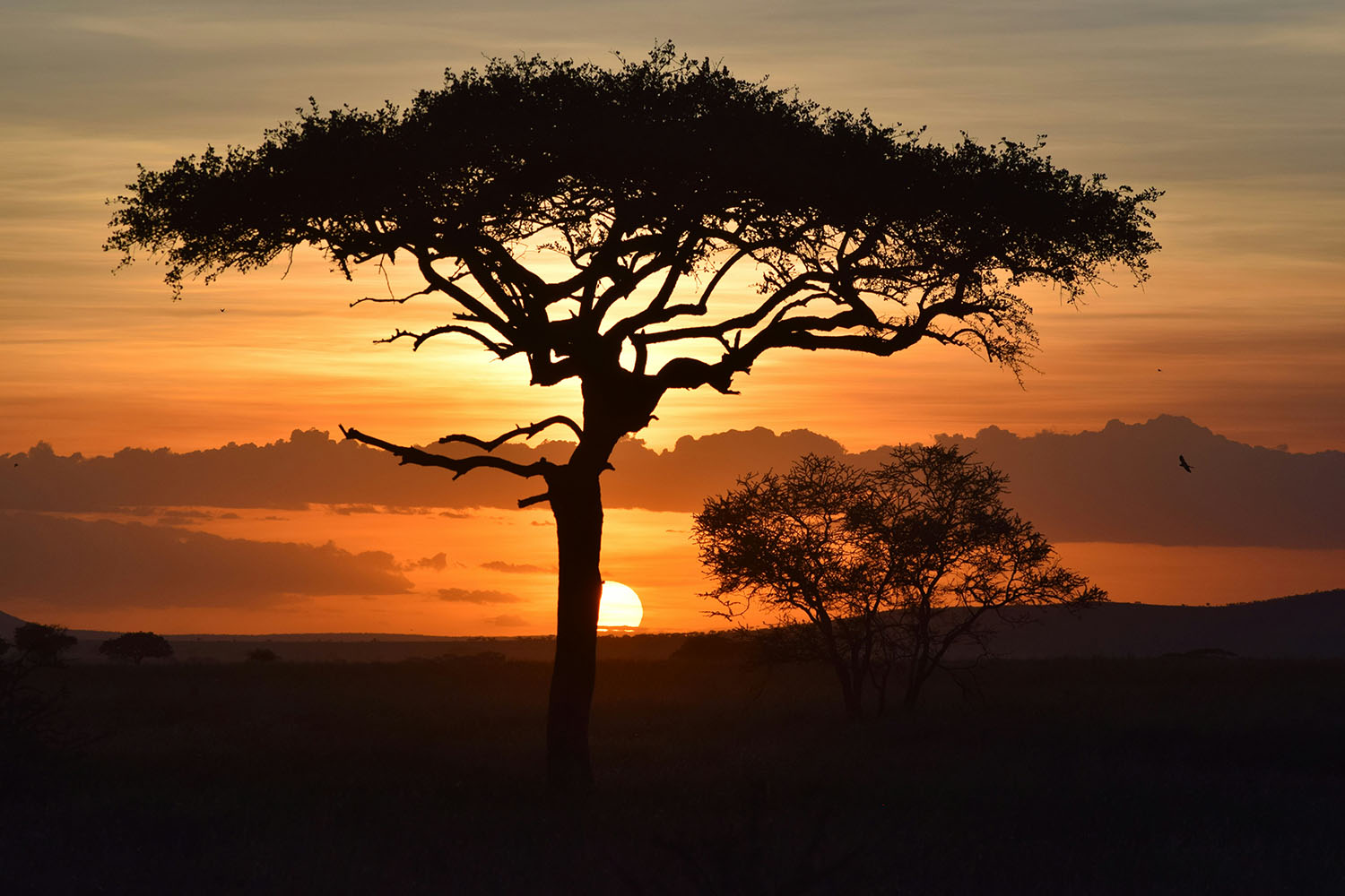 Créé en 1951, le Serengeti (venant de Siringet, « plaine sans fin » en langue maa- langue des masaïs) est l’un des plus grands parcs d’Afrique. D’une superficie de 14 800 km², il est contigu au Ngorongoro à l’Est et au Masai Mara (Kenya) au Nord. C’est un endroit magique aussi bien pour la beauté et la diversité de ses paysages (plaines, savanes à acacias, collines, grandes zones boisées) que pour la variété de ses animaux. Le Parc National de Serengeti abrite en effet une faune considérable en toute saison : gazelles, antilopes, girafes, buffles, zèbres, chacals, phacochères, singes… tous y sont réunis. Éléphants, hippopotames, crocodiles figurent également parmi les principaux pensionnaires du parc. Enfin, plus de 500 espèces d’oiseaux y ont été recensés parmi lesquelles autruches, outardes et serpentaires. Le parc est également réputé pour ses nombreux prédateurs : plus d’un millier de lions, des centaines de guépards, de nombreuses hyènes et quelques léopards y sont ainsi comptabilisés. Si les lions sont davantage visibles près des cours d’eau (notamment aux abords de la rivière Seronera), les guépards et les hyènes sont en revanche présents dans les plaines.