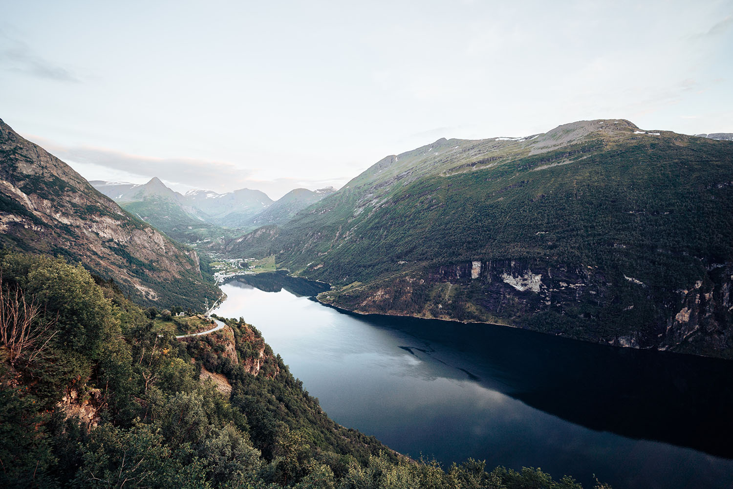 Traversée en ferry entre Linge et Eidsdal avant de poursuivre en direction du village de Geiranger (destination durable), la perle des fjords. Vous y accéderez par la Route des Aigles qui offre un point de vue qui vous laissera sans voix.