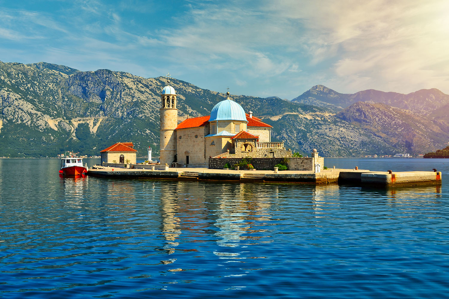 Vous débarquerez pour visiter l'île Gospa od Škrpjela « Notre Dame du Rocher » avec son magnifique sanctuaire qui date du 17ème siècle, lieu sacré décoré par 68 fresques de style baroque typique réalisées par Tripo Kokolja. L’une d’entre elles met en scène la mort de la Vierge sur une longueur de 10 mètres et une autre, la célèbre icône de Notre-Dame-du-Rocher.