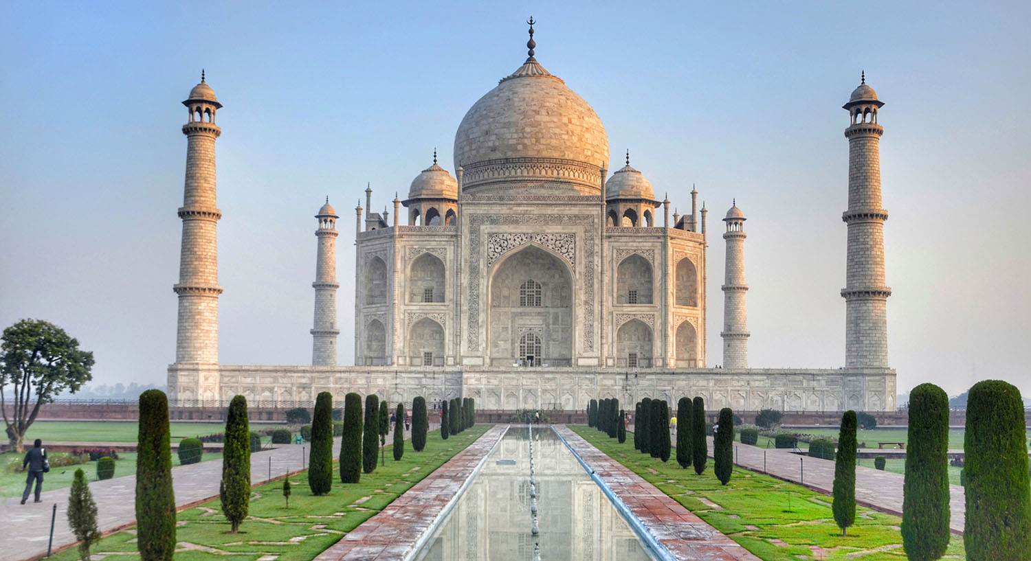 Ce monument Moghol fut construit par l'Empereur Shah Jehan à la mémoire de sa femme Mumtaz Mahal, la "dame du Taj". Il est considéré comme le monument le plus extravagant jamais bâti par amour, car l'Empereur eut le cœur brisé quand Mumtaz Mahal, à laquelle il était marié depuis 17 ans, mourut en couches en 1629 après avoir donné naissance à son 14ème enfant. La construction du Taj fût entreprise en 1631 et fut achevée en 1653.