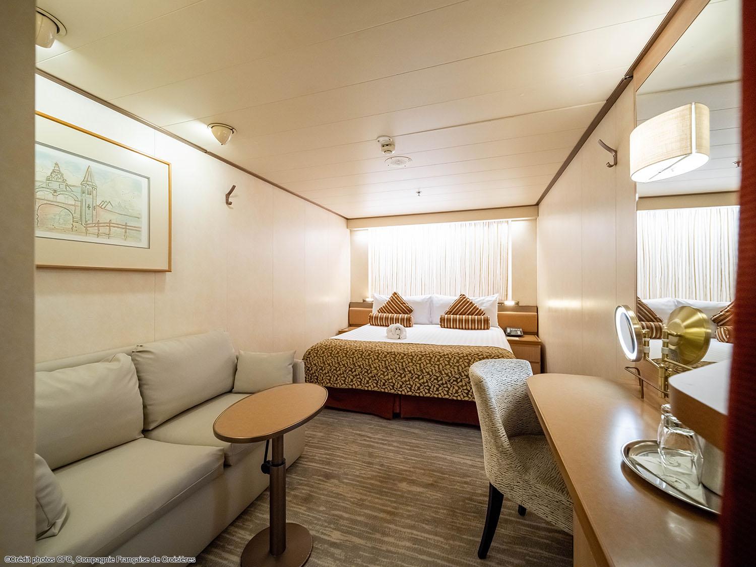 Naviguant avec majesté, le Renaissance est une fierté pour CFC Croisières. Renommé pour sa grandeur et son élégance intemporelle, ce bijou flottant, entièrement rénové en France pour une clientèle francophone, s'impose comme l'un des navires les plus spacieux de sa catégorie. Partez de ports emblématiques tels que Le Havre, Bordeaux ou Marseille, et installez-vous dans l'une de ses cabines accueillantes, dont 80% offrent une vue extérieure. Ses dimensions et son équipement, des stabilisateurs à la climatisation, promettent un voyage confortable et mémorable. Dans l'intimité de ses 629 cabines, hébergeant plus de mille passagers, le ratio espace/passager s'aligne avec celui des navires de luxe, garantissant un sentiment d'exclusivité.