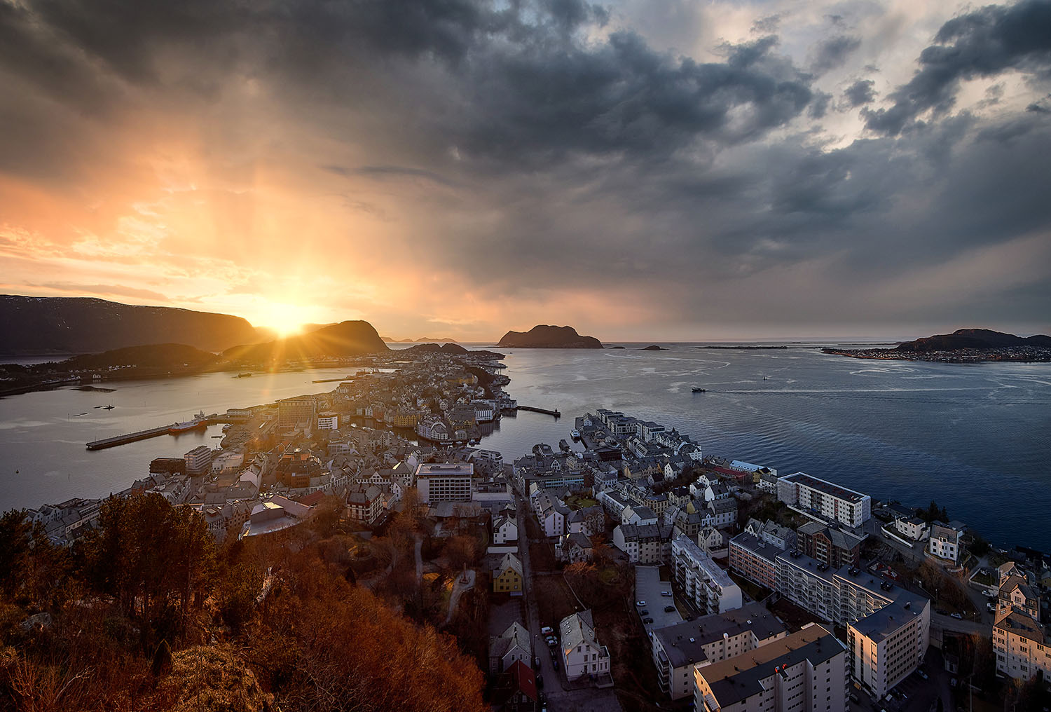 Nichée sur plusieurs îles face à l’océan Atlantique, Ålesund est un important port de pêche et l’une des villes les plus pittoresques et singulières de Norvège. Avec son architecture Art nouveau unique, ses panoramas à couper le souffle et sa proximité avec les fjords les plus célèbres, Ålesund est une escale incontournable sur la côte ouest du pays.