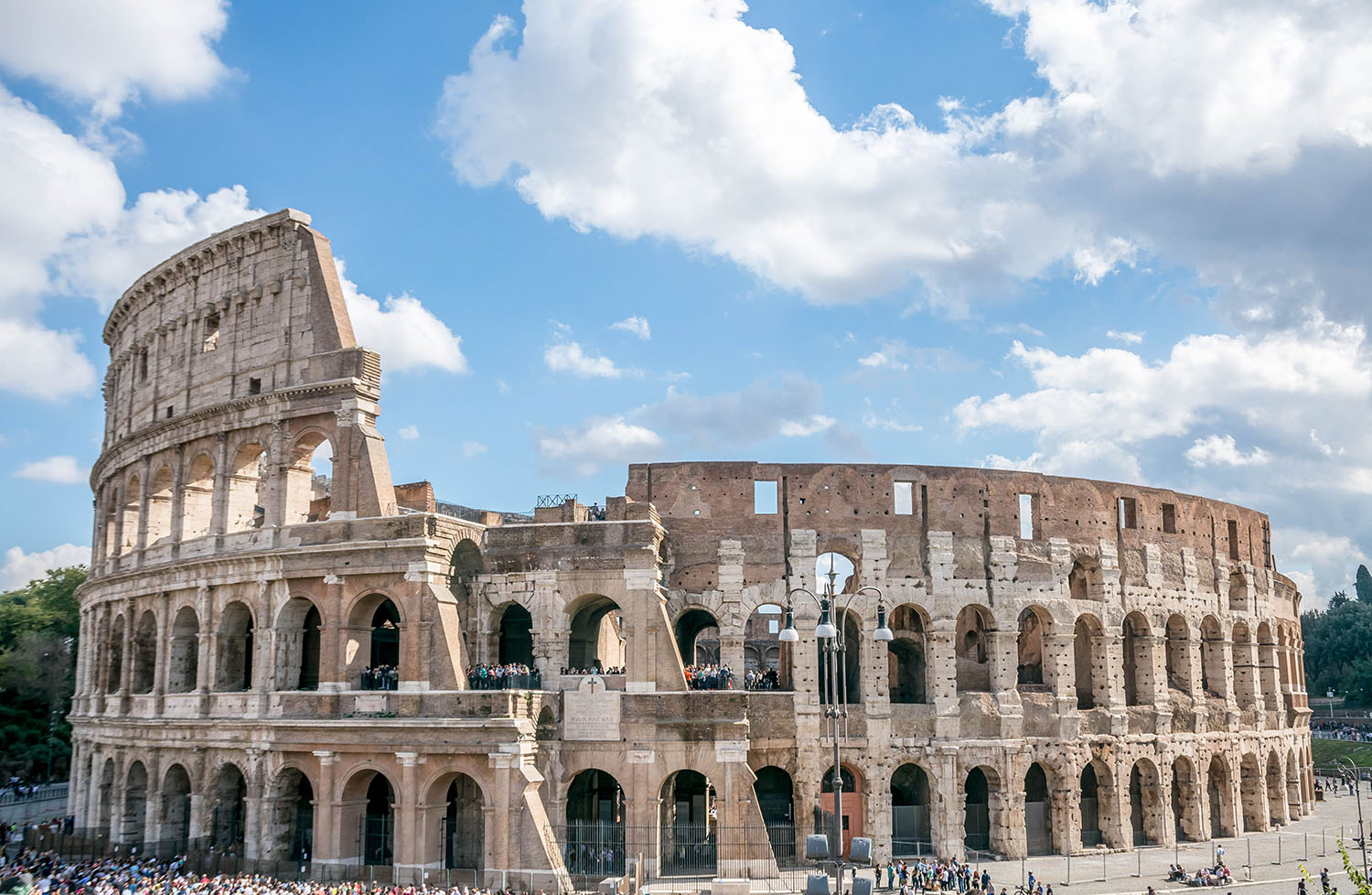 Visite de la Rome antique : découverte extérieure du forum romain, qui fut pendant des siècles la place principale de la capitale, de la Piazza Venezzia, du Capitole et du Colisée symbole universellement connu de Rome. C’est un bâtiment aux dimensions extraordinaires. Autrefois cet imposant édifice pouvait accueillir jusqu’à 50 000 spectateurs venus assister à des combats de gladiateurs.