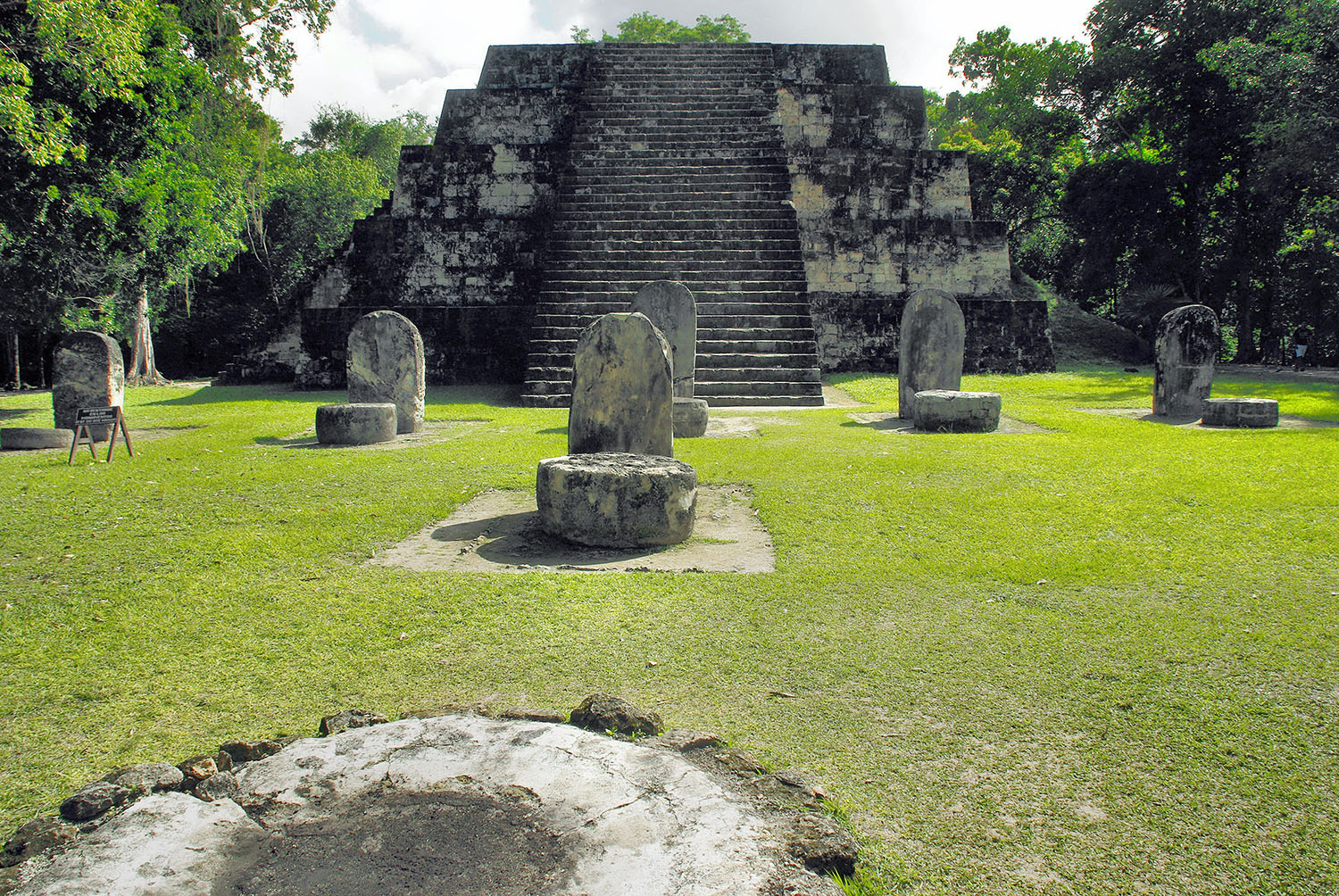 Sept stèles géantes furent érigées à l’époque classique au 8ème siècle après Jésus Christ, sous le règne de Ciel Cauac et sculptées à son image. La principale stèle se dresse à 8 mètres du sol et s’enfonce sous terre d’une longueur de 3 mètres. Elle est la plus grande stèle maya connue. Ce qui rend cet aspect colossal particulier, ce sont également les sculptures réalisées sur chacune d’elle représentent des personnages barbus et couverts de riches coiffes, ce qui est très surprenant pour l’art maya.