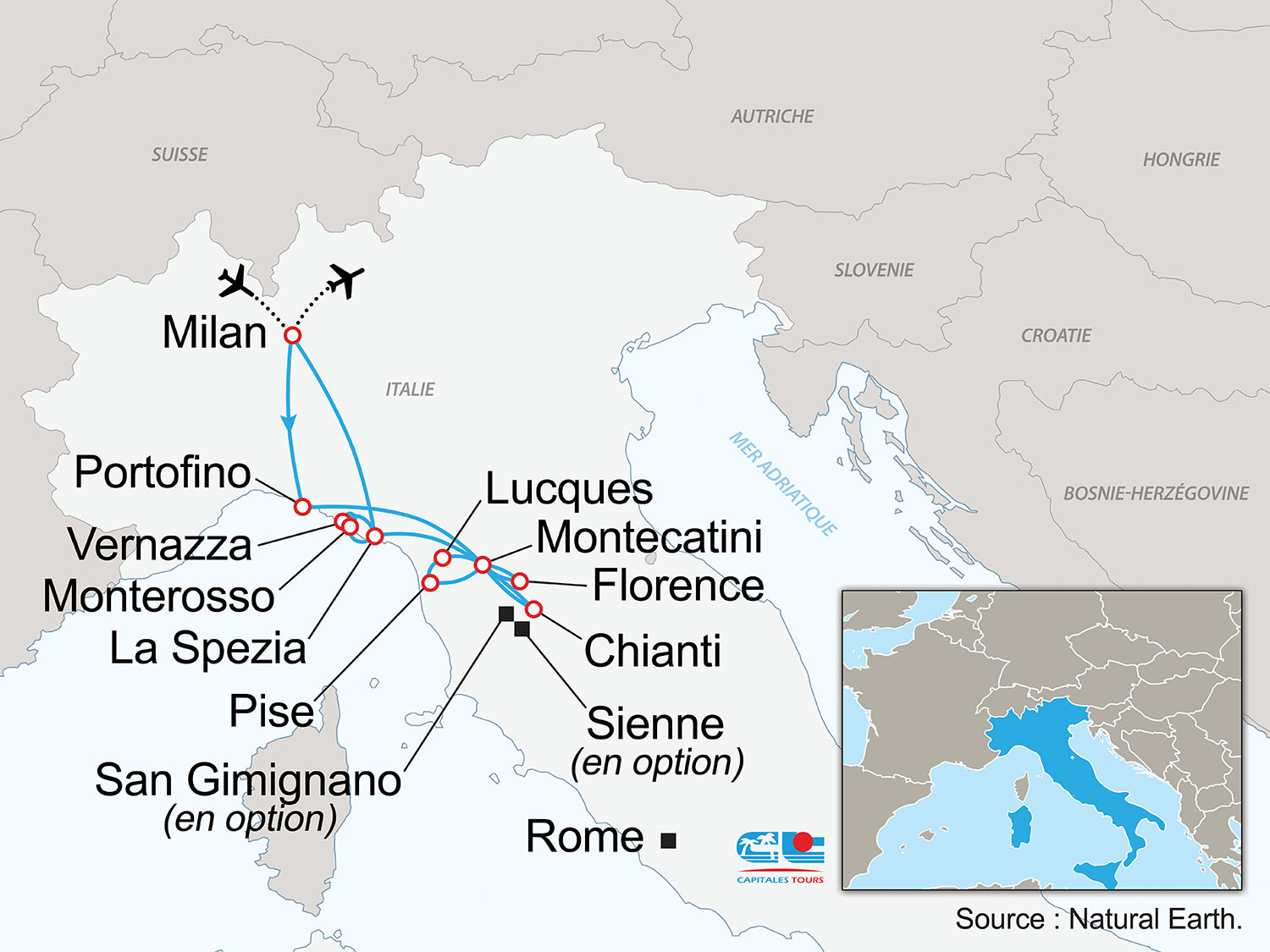 • En option : Sienne & San Gimignano (165 € NET par personne, à réserver avant le départ).