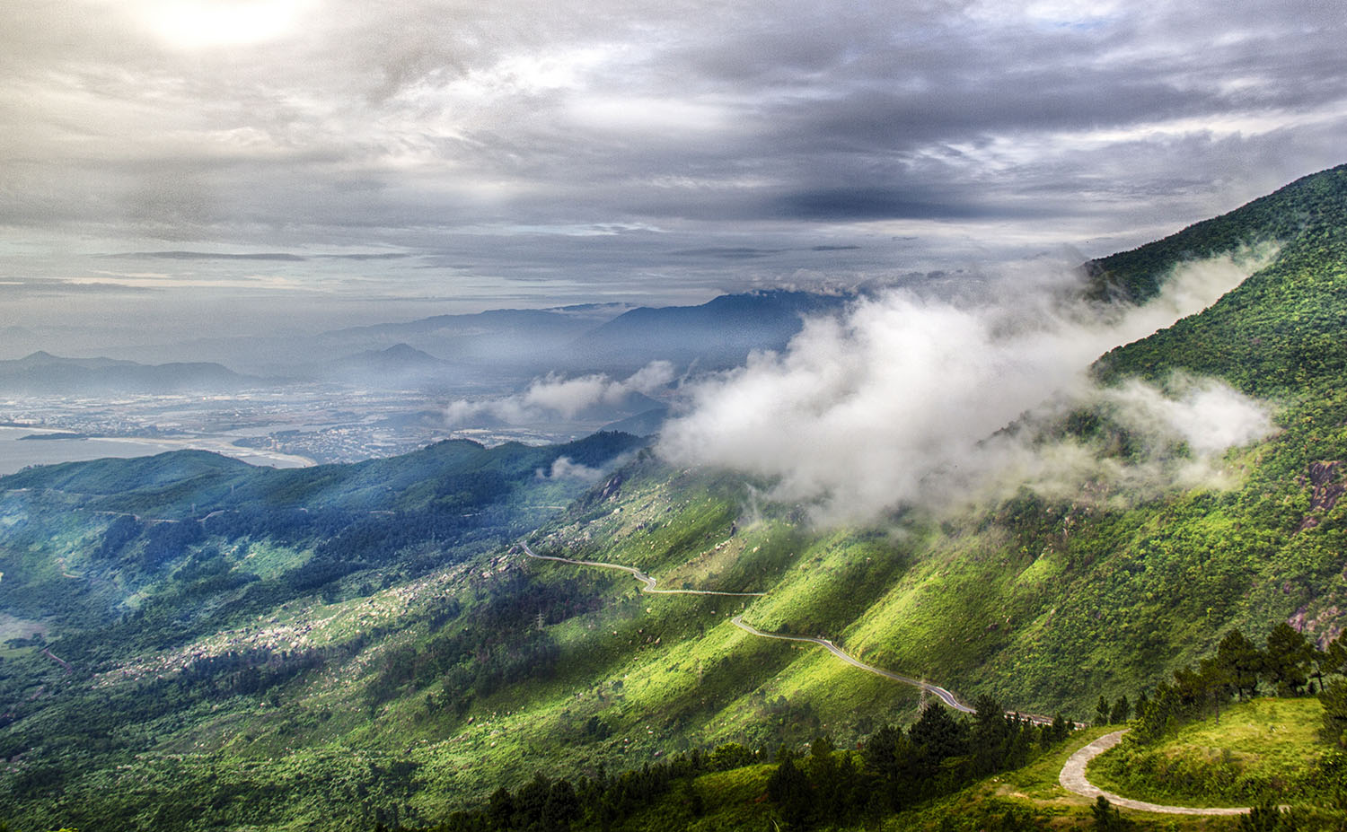 Départ par la route vers Hue en empruntant la fameuse Route Nationale 1 qui traverse le pays du Nord au Sud sur 2 301 kilomètres. Arrêt au col des Nuages (Đèo Hải Vân qui atteint près de 500 m au-dessus de la mer) pour admirer le superbe panorama : en contrebas, vous remarquerez la péninsule de Lang Co bordée par une lagune aux eaux turquoise et de longues étendues de sable fin ponctuées de villages de pêcheurs et de cocoteraies.